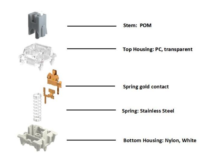 Longer Lifespan with Self-Lubricating Material: GATERON's use of self-lubricating POM (polyoxymethylene) in stems and housings, which reduces friction over time, has improved from the original G-switch to the G Pro series. Each switch is rated for 80 million keystrokes.