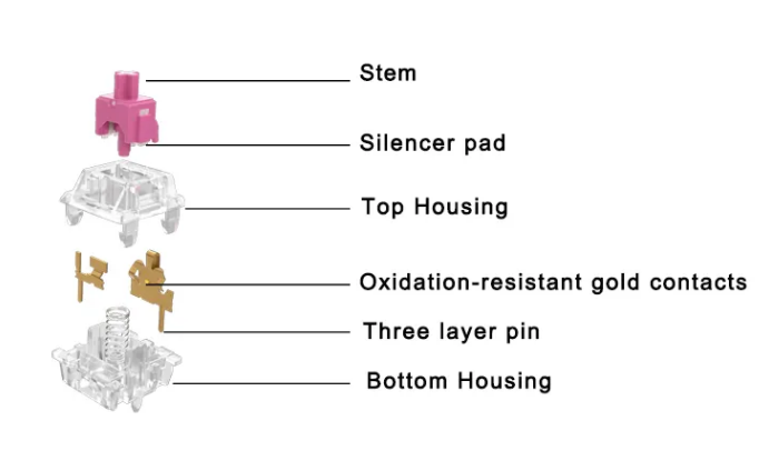 In other words, the material stack is not just a spec sheet detail. It is one reason Noise Reduction Keyboard Switches can feel calm and controlled instead of hollow or sharp.