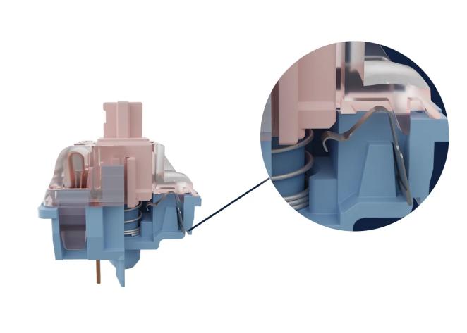 GATERON low-profile clicky switches are made from a combination of gold alloy contacts and high-end dual-rail design POM (polyoxymethylene) stems. This engineering combination achieves two goals concurrently.