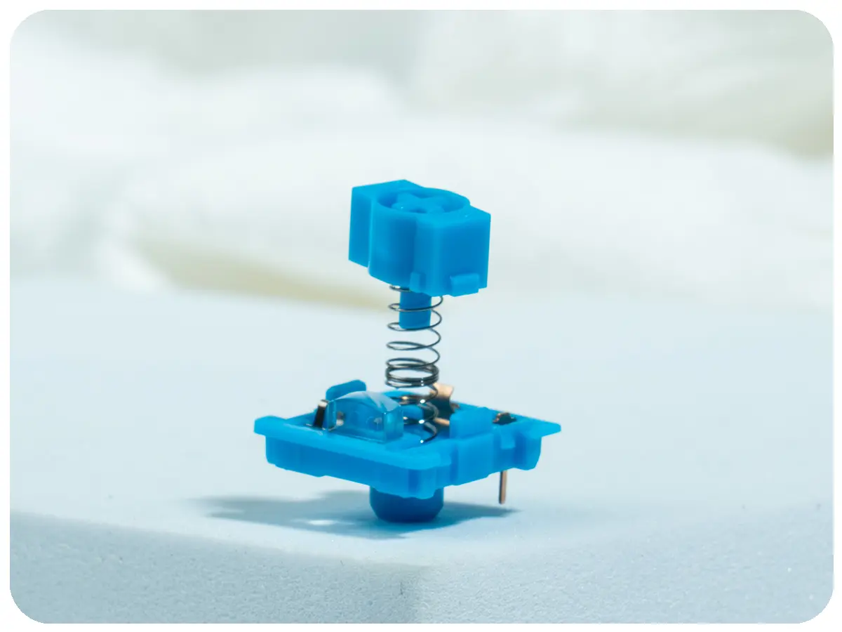 | Dual-Stage Spring Instant Rebound The custom dual-stage spring provides a quick and responsive rebound, helping reduce typing fatigue while maintaining smooth and consistent keystroke feedback for improved comfort during extended use. |