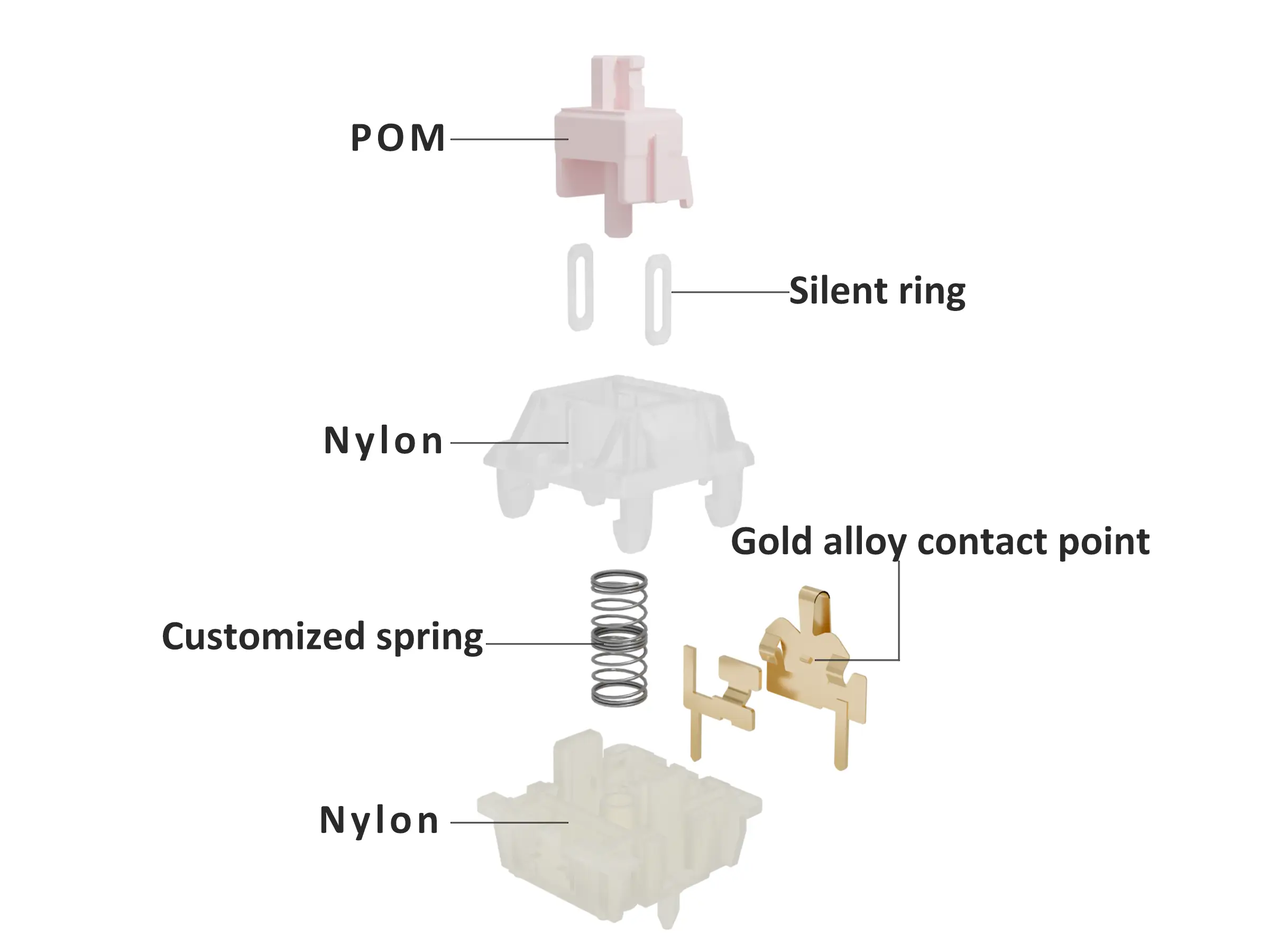 Crafted with durable, high-quality milky plastic housings, the KS-3X1 series offers superior RGB light diffusion, casting a soft, even glow that transforms your keyboard’s aesthetics while maintaining precise internal alignment. The reinforced structural design significantly reduces stem wobble, providing stable, crisp keystrokes with every press. Built to last, these switches retain their smooth performance over extended use, making them the ideal dependable choice for users seeking comfort, precision, and everyday reliability.
