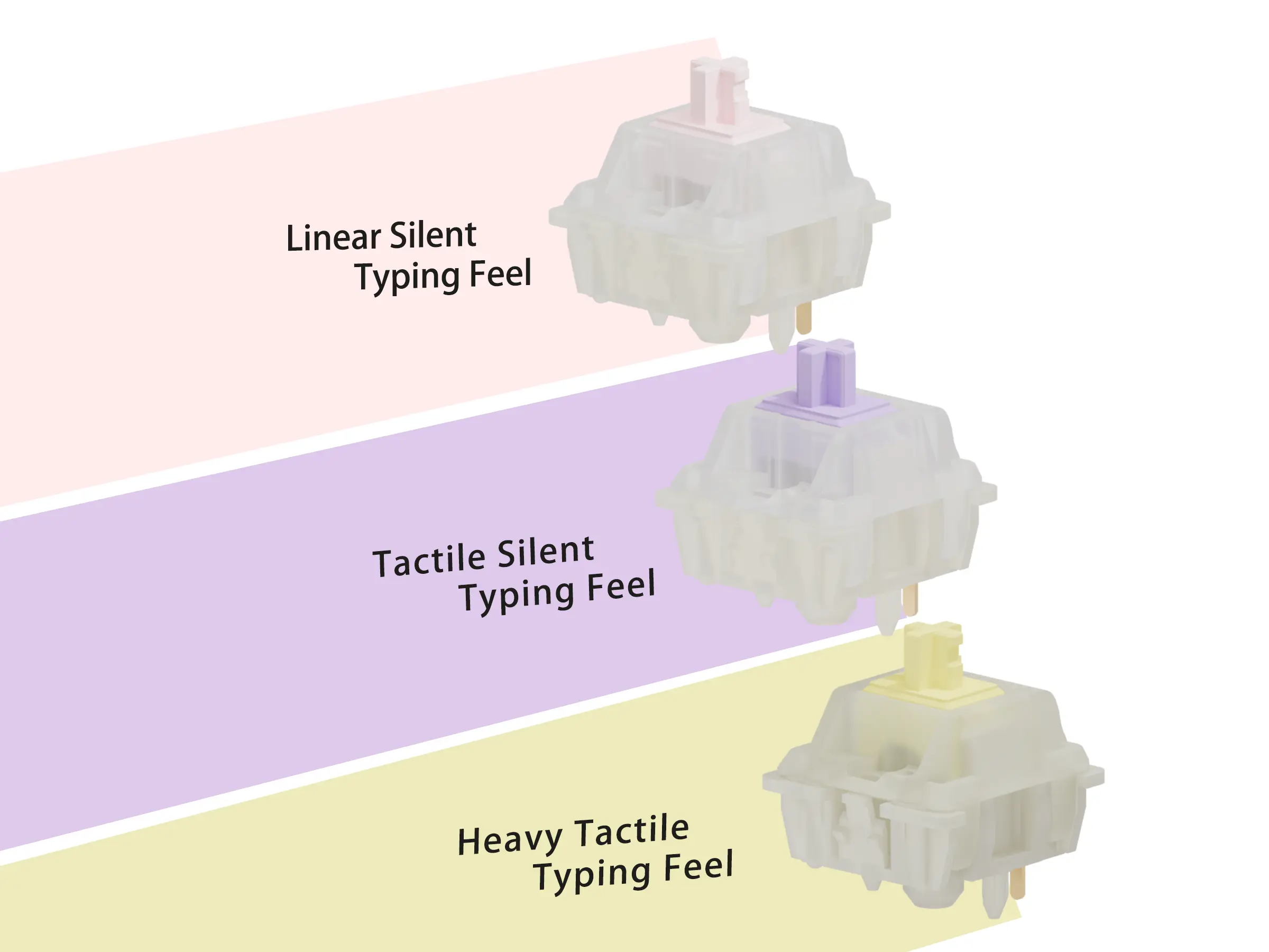Three Colourways Three Modes Offering multiple typing experiences designed to match different typing preferences, allowing users to enjoy varied tactile feedback within one series. |
