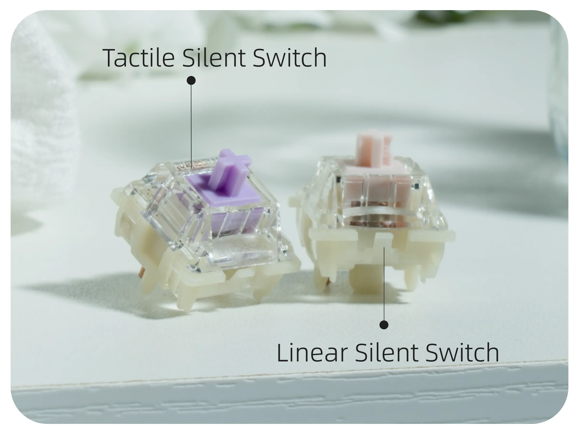 In Silent Mode, it delivers a completely refreshed typing experience with reduced noise and smoother key feedback. The design combines linear and tactile characteristics while maintaining a quiet operation, allowing each keystroke to feel distinct yet unobtrusive. This balance enhances comfort, precision, and focus during long typing or gaming sessions. |