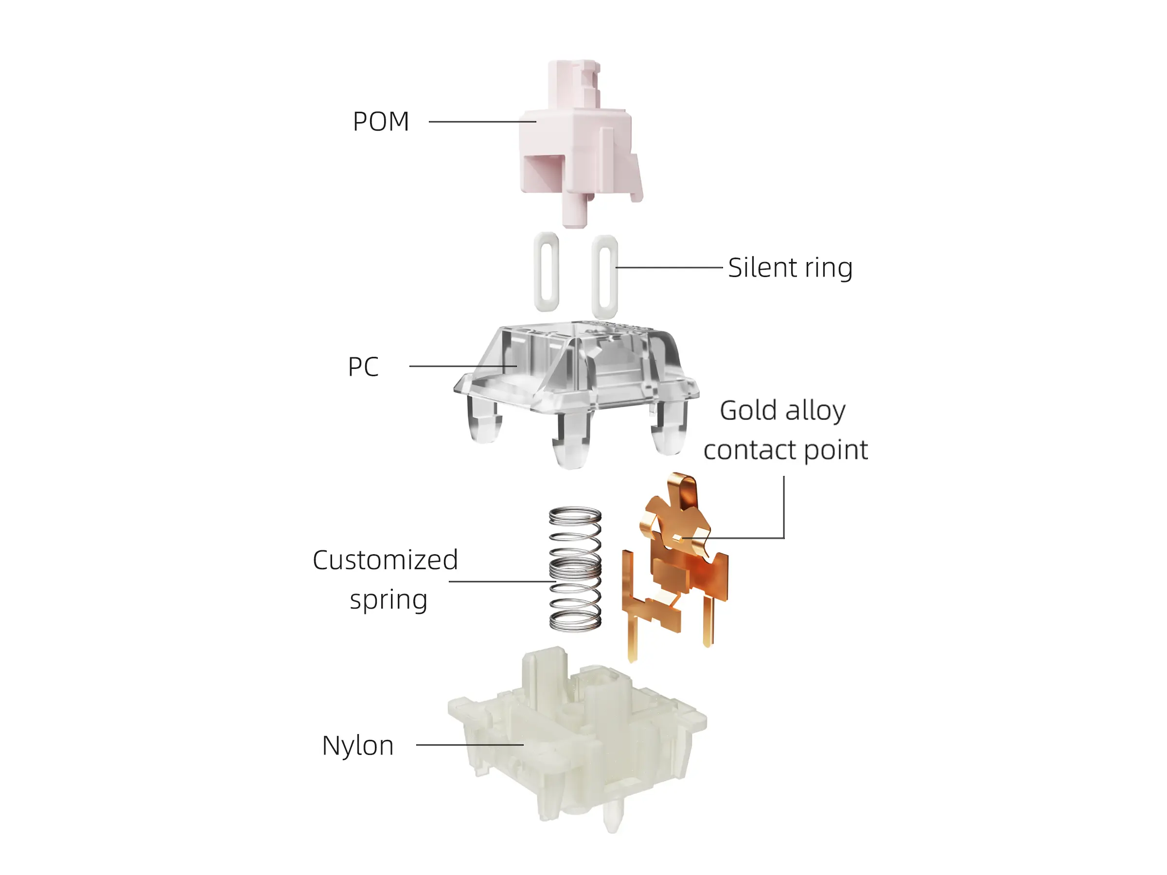Dual-stage spring design delivers a more dynamic typing response, offering a light initial press followed by a stronger, more controlled actuation. This creates a balanced feel that enhances both speed and precision, giving users a more refined and responsive keyboard experience. |