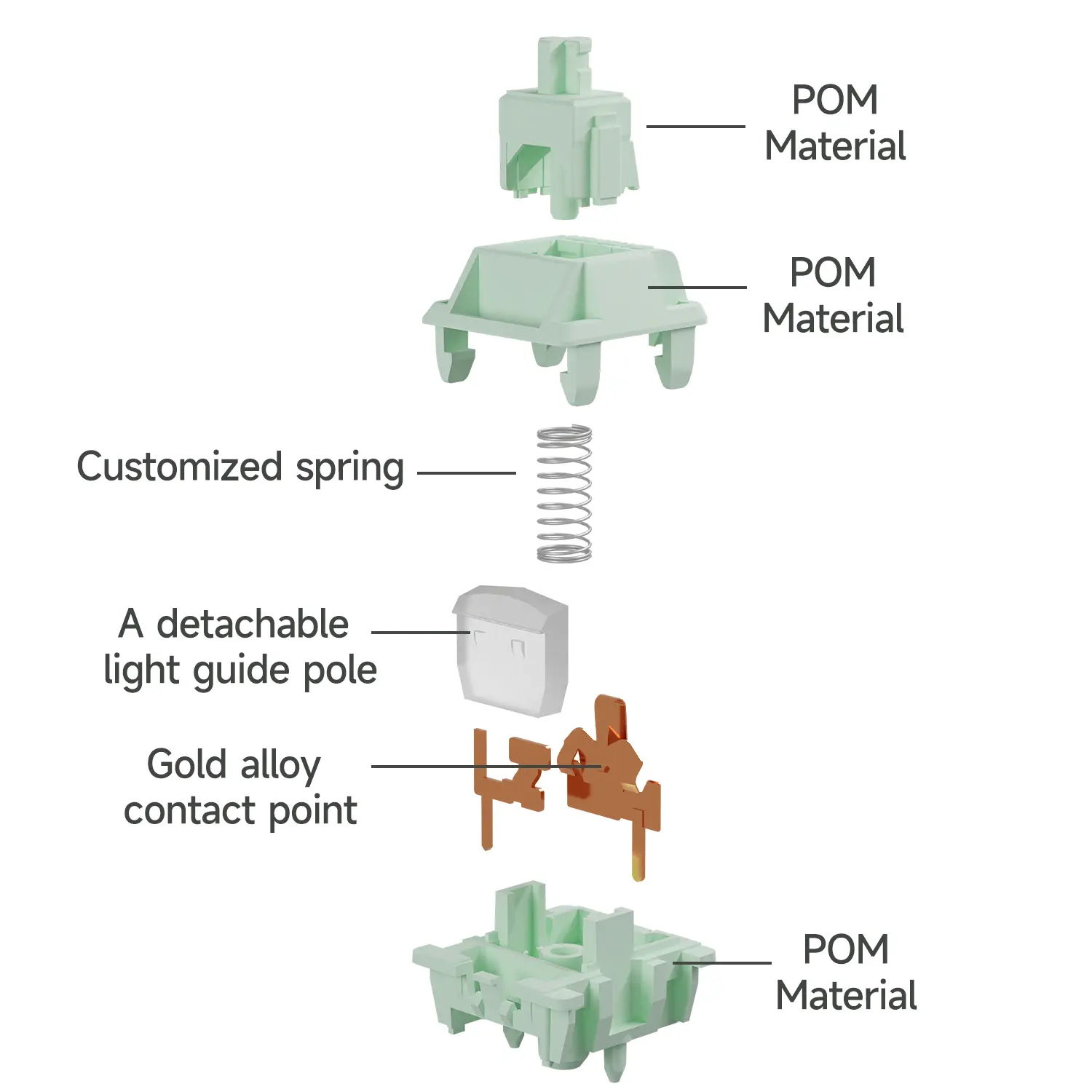 The Smoothie Switch series features a Full POM material Housing that effectively reduces friction, expanding its lifespan. With inherent oxidation resistance and corrosion resistance, this switch ensures consistent performance over time, maintaining its pristine quality even with prolonged use.